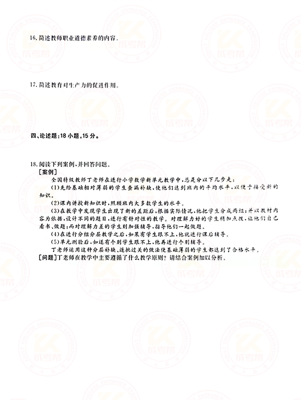 2021年山东成人高考专升本教育理论考试真题及答案